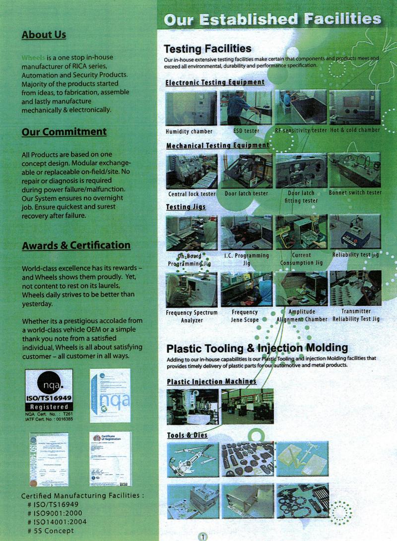 Wheels威世是一家起源於一站式之家居、工業、商業及汽車業(RICA)的自動化及防盜產品製造商。產品主要由研發、組合、裝配、結合電子與機械、直到生產製成品。